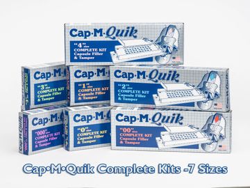 The complete kit comes in seven sizes starting from the smallest size "4" , "3" ," 2", "1", "0" ,"00" and "000" the largest. The Complete Kit includes a capsule filler as well as the accessory tamper.